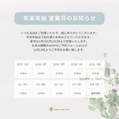 お知らせ 年末年始の営業日時のお知らせ
